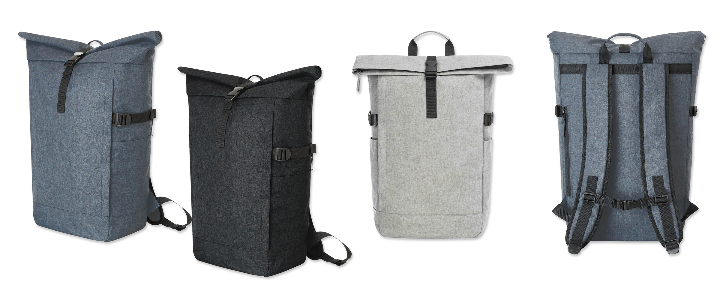 urbaner Rucksack mit Reißverschluss-Hauptfach und Steckverschluss, recyceltes PET-Obermaterial, Inhalt: 32 l, H 47 cm, B 30 cm, T 16 cm, gepolstertes Einsteckfach und Organizer-Elemente innen, seitliche Reißverschluss-Vortaschen, zwei seitliche Einsteckfächer, Fixiergurte, rückseitige Reißverschluss-Tasche, gepolstertes Tragesystem mit höhenverstellbarem Brustgurt, Handgriff, Farboptionen: blau-grau, hell-grau, schwarz