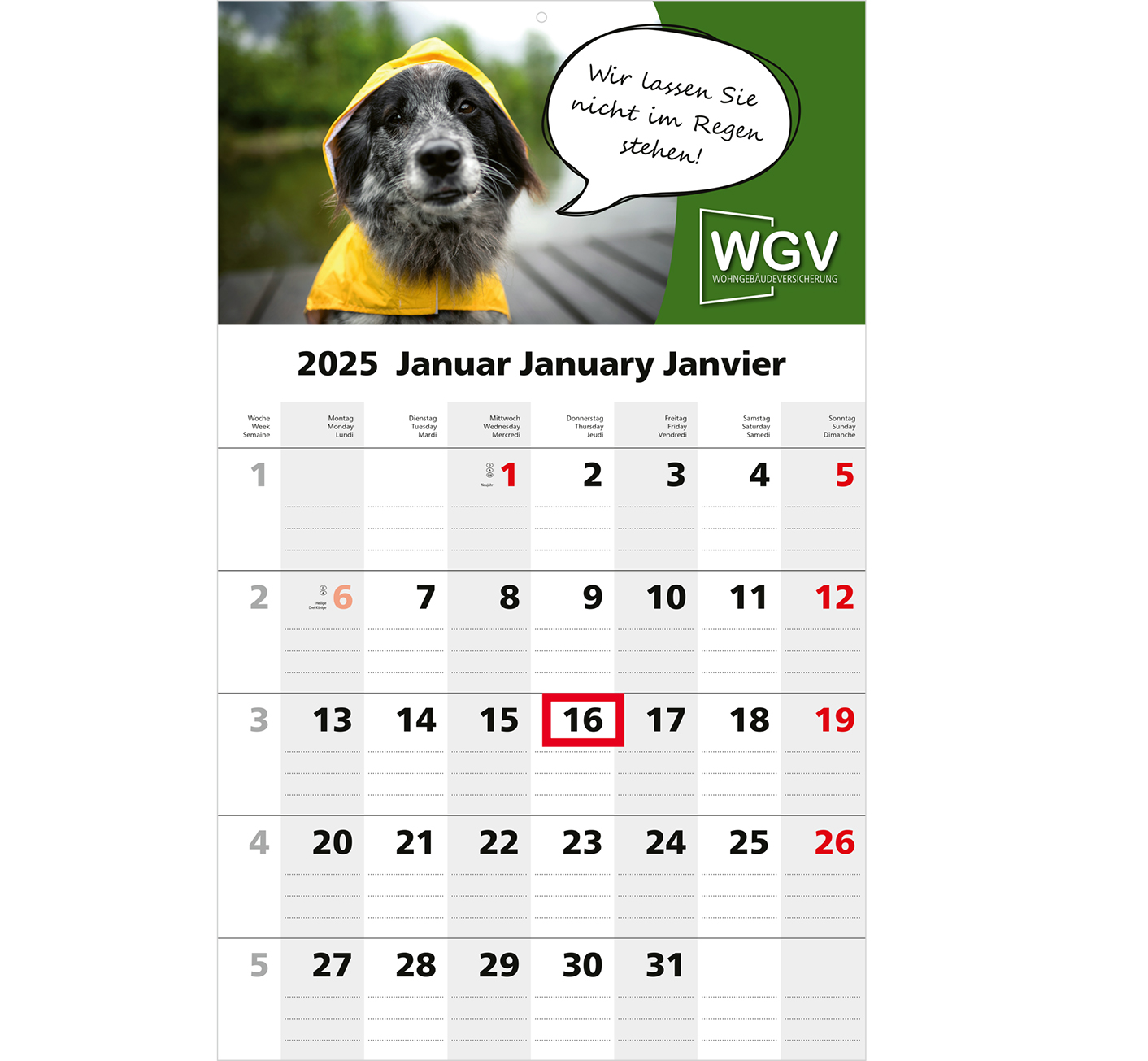 Der übersichtliche Einblatt-Monatskalender liefert alle wichtigen Infos auf einen Blick. Je Kalenderblatt wird ein Monat einschließlich der Kalenderwochen dargestellt. Für jedes Datum gibt es ausreichend Platz und eine praktische Linienführung zum Eintragen von Terminen.