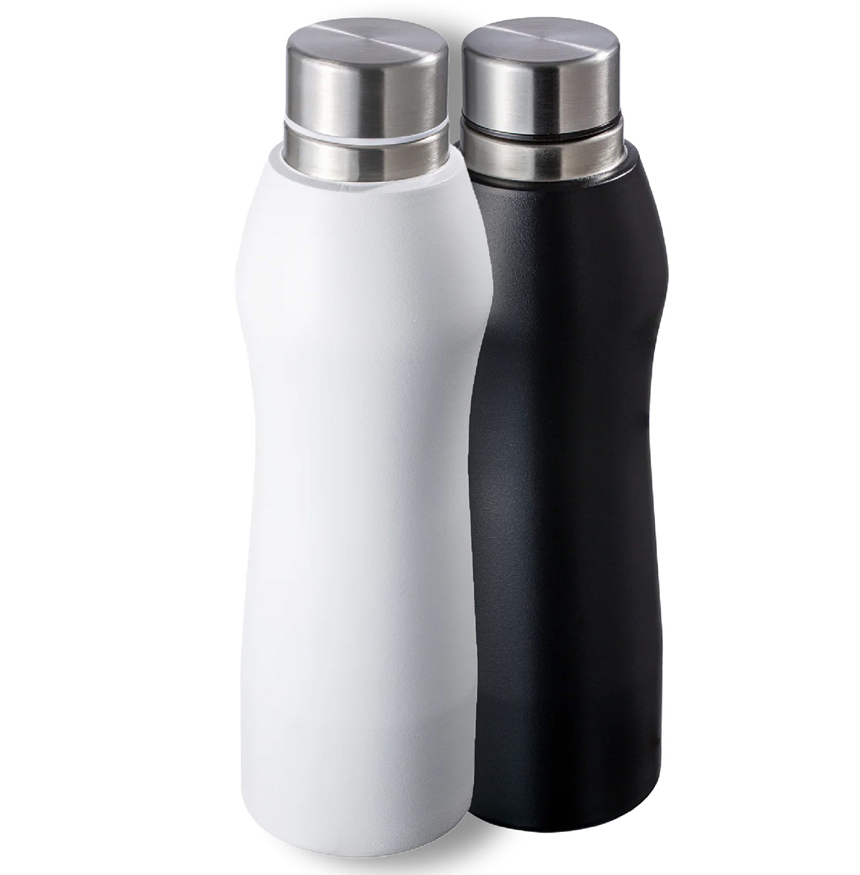 Eine formschöne Edelstahlflasche mit schwarzer oder mattweißer Pulverbeschichtung, die gut in der Hand liegt. Sie ist für kohlensäurehaltige Getränke geeignet, auslaufgeschützt, spülmaschinengeeignet und hat ein Fassungsvermögen von 860 ml.